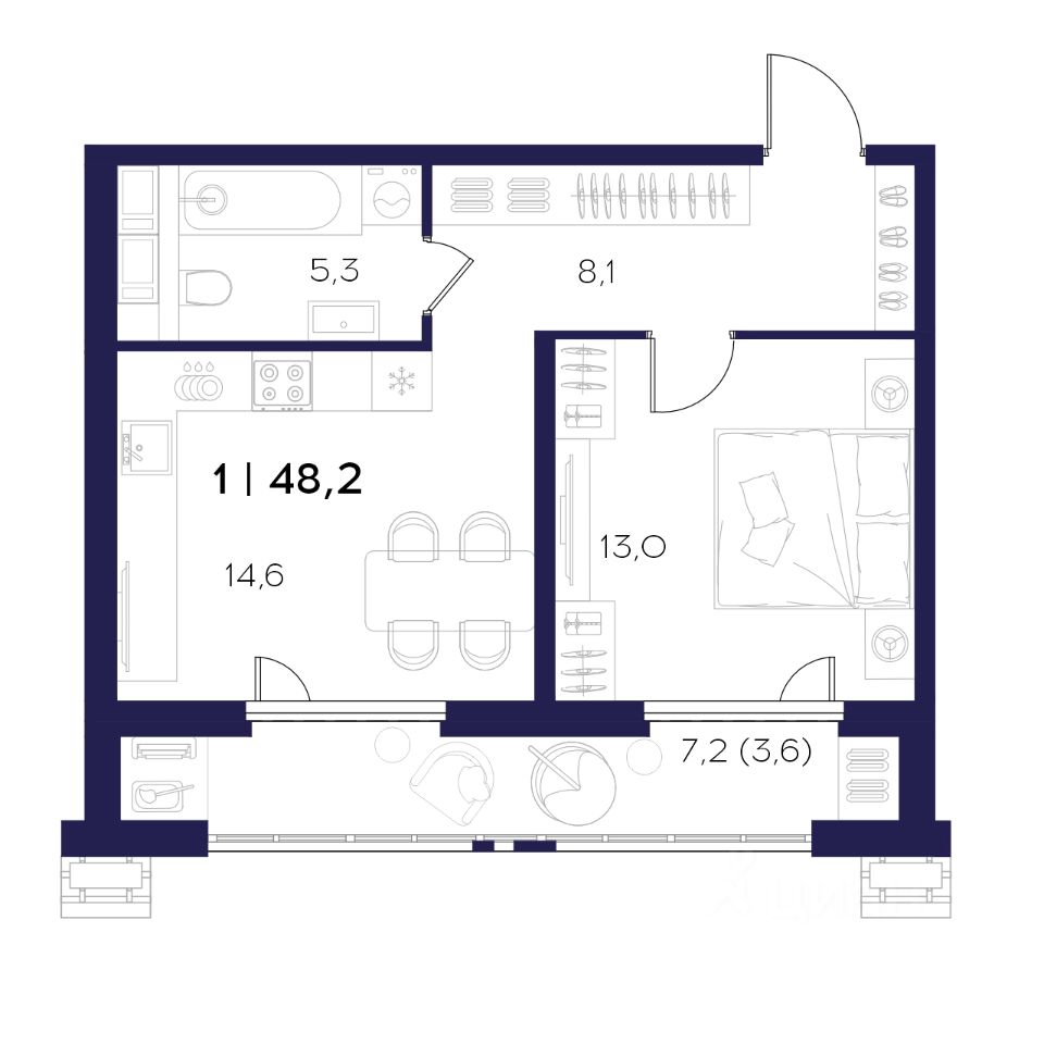 Общая площадь48,2 м2