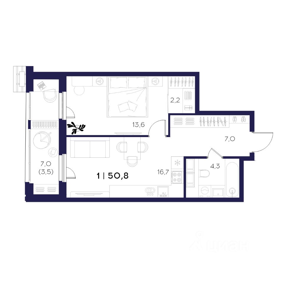 Общая площадь50,8 м2