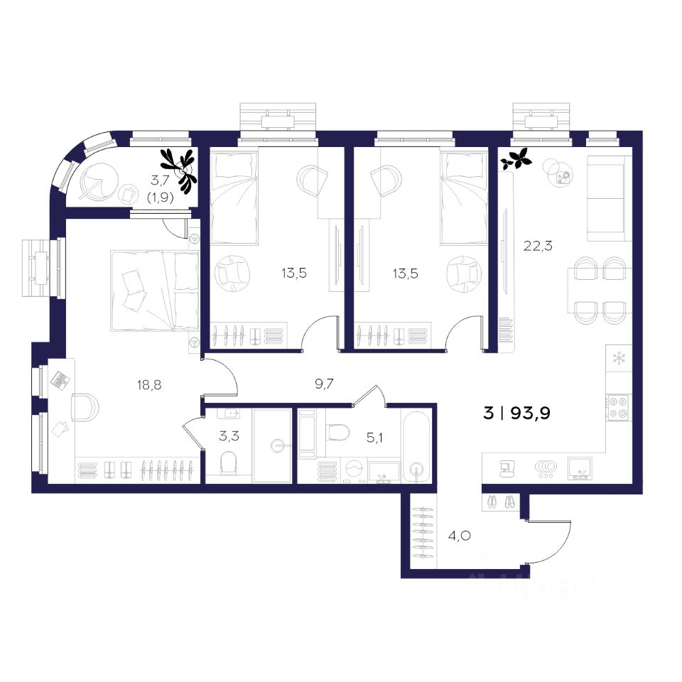 Общая площадь93,9 м2