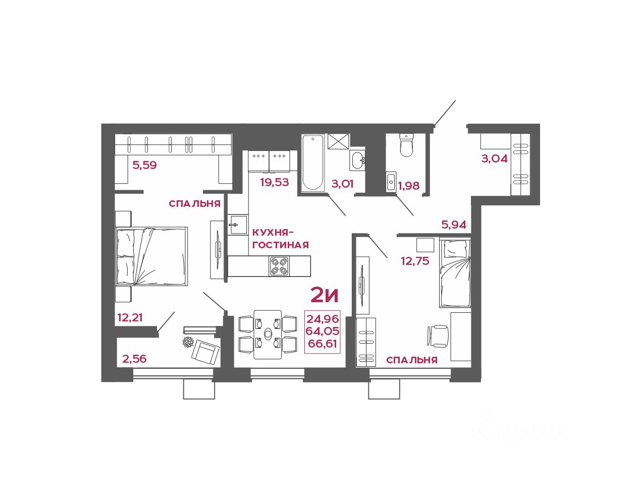Общая площадь66,61 м2