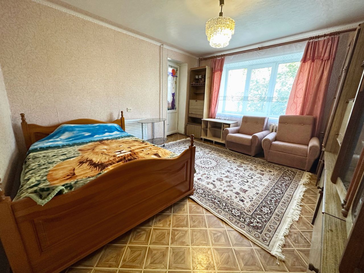 В квартире ремонт ''заезжай и живи'', есть вся необходимая для жизни мебель. Пол в квартире покрыт линолеумом, внешний вид которого имитирует натуральный паркет. Благодаря защитному слою материал не выгорает на солнце. Влагоустойчивые свойства делают его неприхотливым к уборке. Розетки установлены в каждом значимом функциональном месте квартиры.