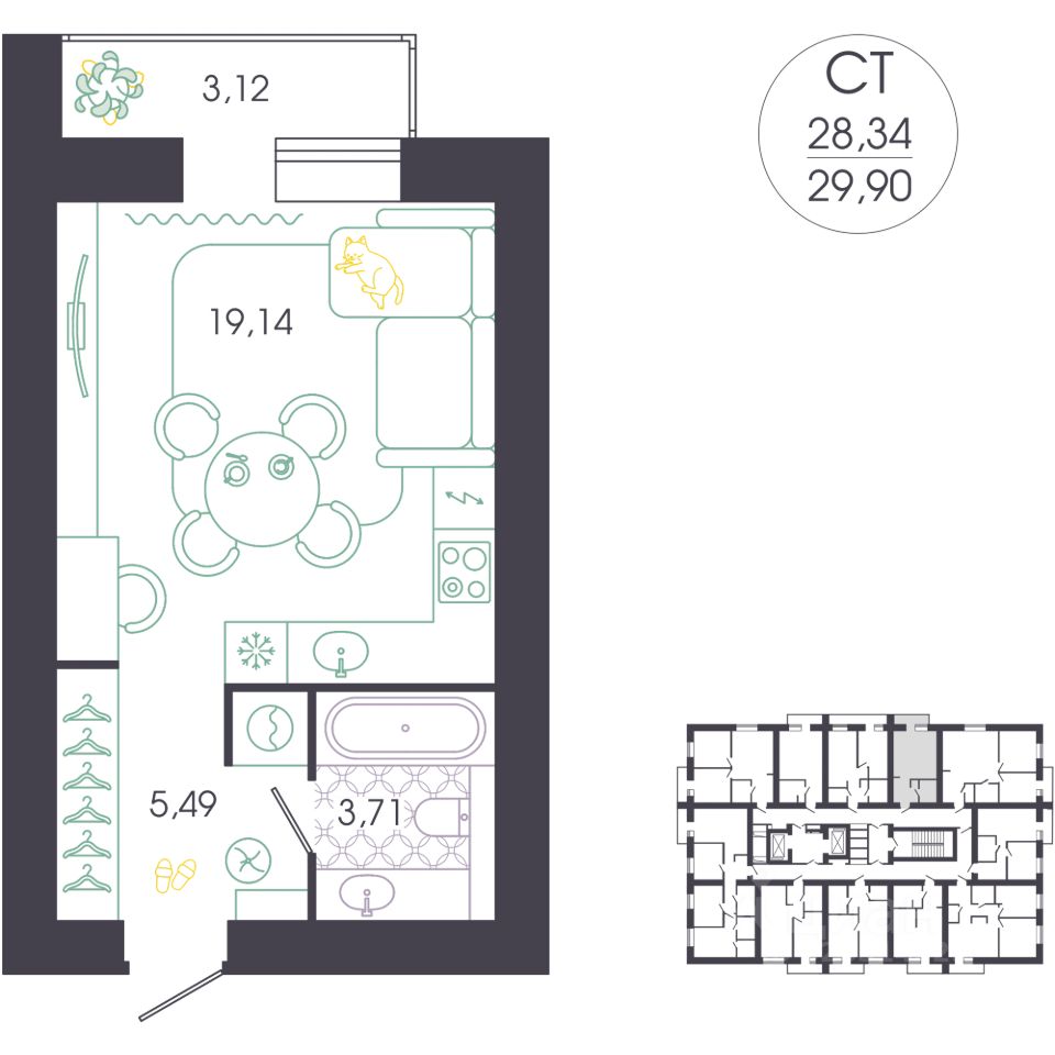 продам 1-к, Колышлейская, 73 259 100 ₽