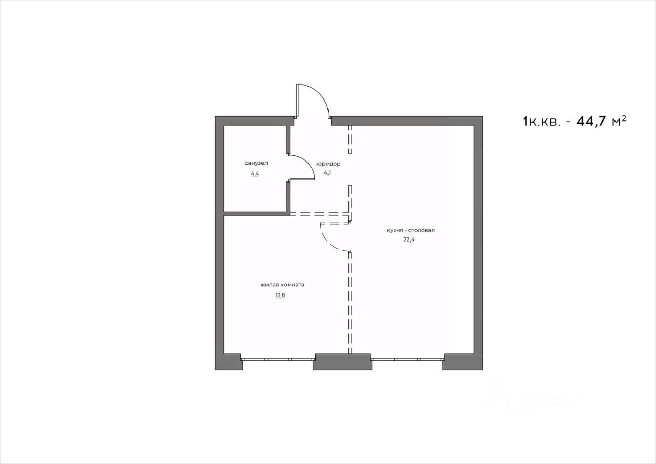Общая площадь44,7 м2