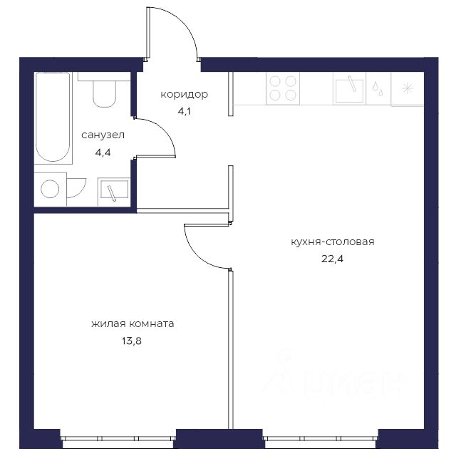 Жилая площадь13,8 м2