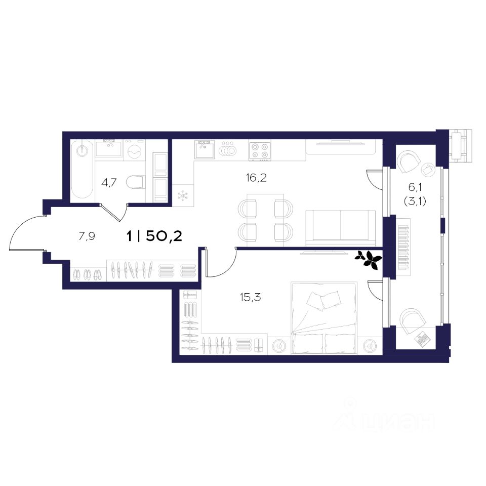 Общая площадь50,2 м2