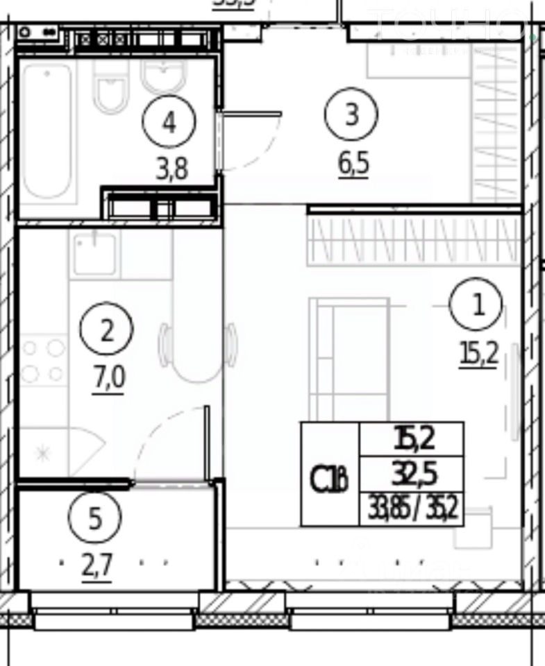 Общая площадь 35,2 кв.м.