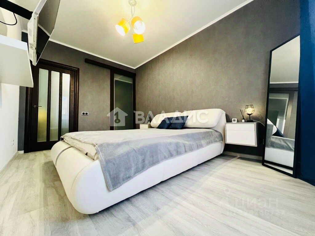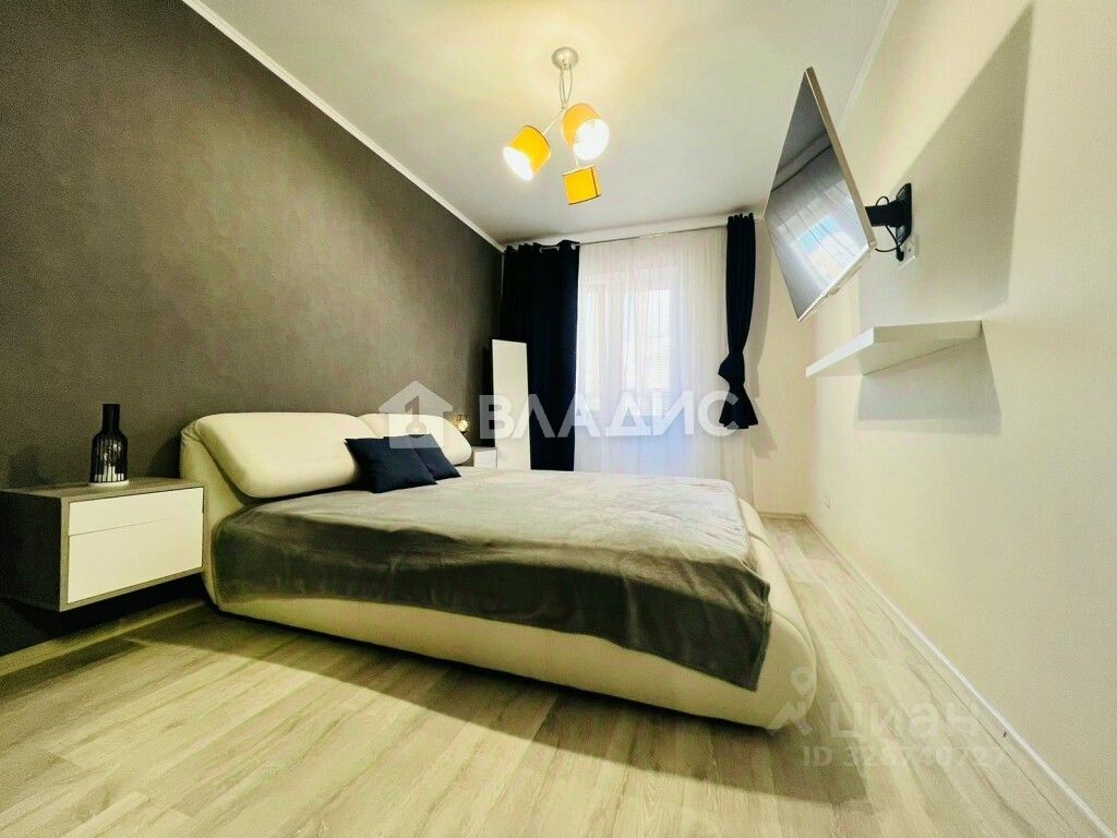 Квартира полностью укомплектована мебелью и техникой: кухонный гарнитур, варочная панель, духовой шкаф, печь свч,вытяжка, обеденная группа, ТВ - 3 шт, диван, спальная зона. Квартира оборудована 2 - мя гардеробными. Входная металлическая дверь, установлены межкомнатные двери, пластиковое остекление окон и лоджий, натяжные потолки с точечным освещением, напольное покрытие ламинат, санузел совмещен установлена сантехника пр-ва Италия.