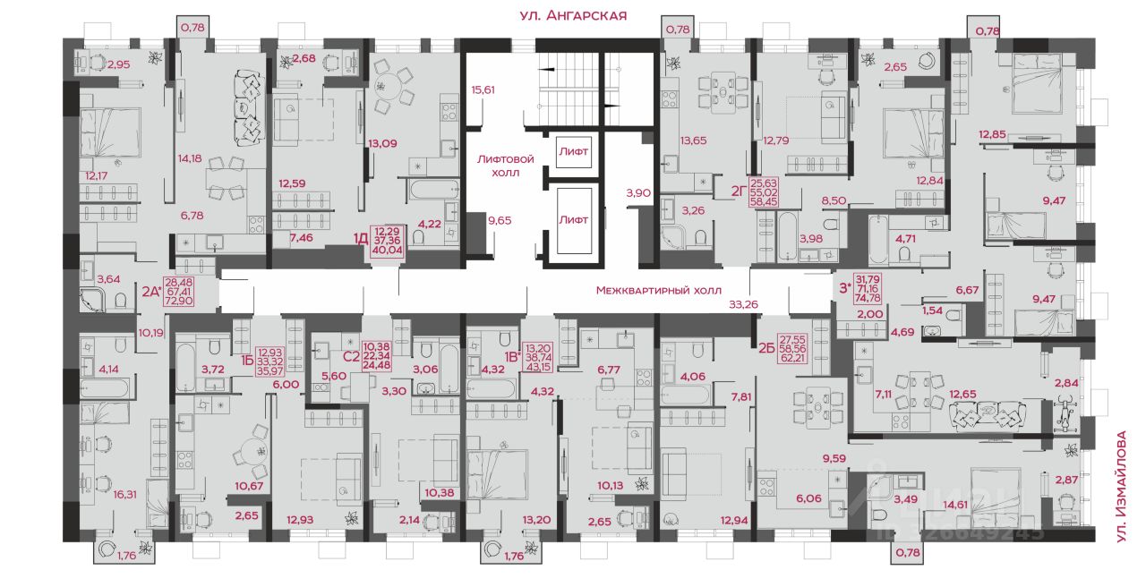 - 2 двухуровневые квартиры