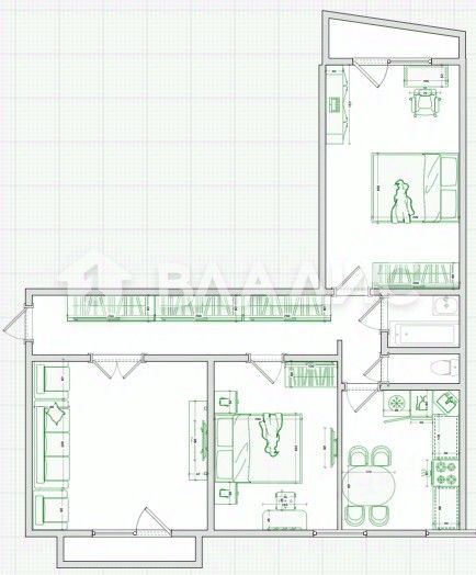 Общая площадь - 67,4 кв.м. Жилая площадь - 42,6 кв.м. Площадь кухни - 7,5 кв.м.