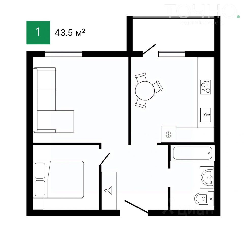 Смарт-планировка: просторная кухня, отдельная гостиная и изолированная спальня для ценителей уюта, сна и личного пространства. Идеальный вариант для одного или двоих.
