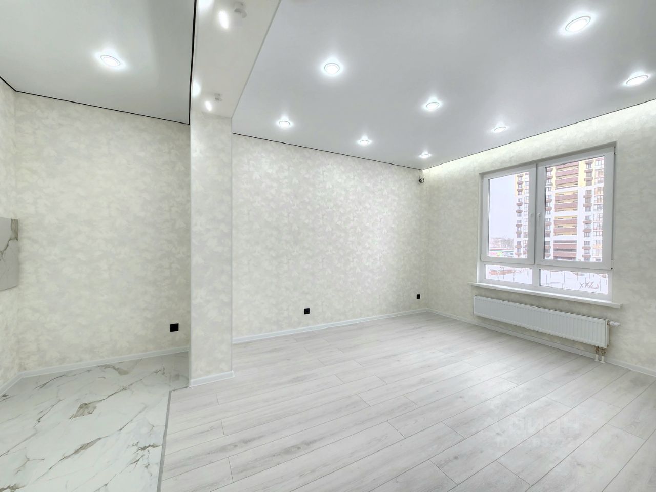 Квартира расположена на 4м этаже. Новый ремонт, никто не жил! Входная группа- керамогранит. Просторная кухня гостиная, здесь можно поставить диван. Фартук выложен широкоформатной плиткой.Кухонный гарнитур можно заказать на ваш вкус! Санузел совмещен в кафеле, тропический душ, акриловая ванна, зеркало с фоновой подсветкой. Натяжные потолки, подсветка гардин. Ламинат 32 класса с фаской.
