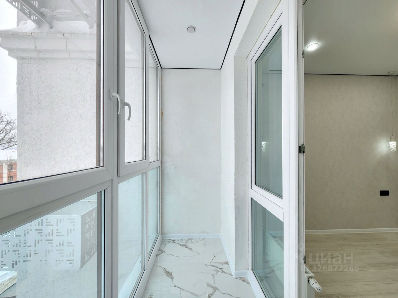 Лоджия остеклена, выведен свет.