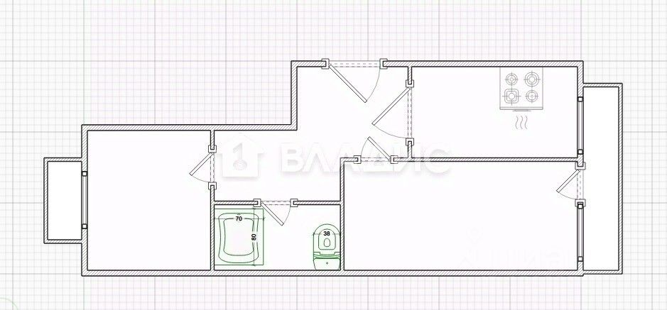 Планировка квартиры очень удобная -''распашонка'', с окнами, выходящими на обе стороны дома. - Просторный коридор. - Вместительная кухонная зона. - Совмещенный санузел. - Изолированные комнаты.