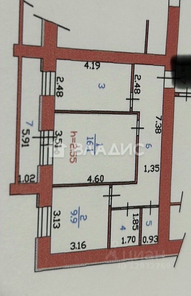 Общая площадь: 60 кв.м. ( с учётом лоджии) Жилая площадь: 26 кв.м Кухня: 10 кв.м