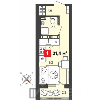 Общая площадь21,4 м2