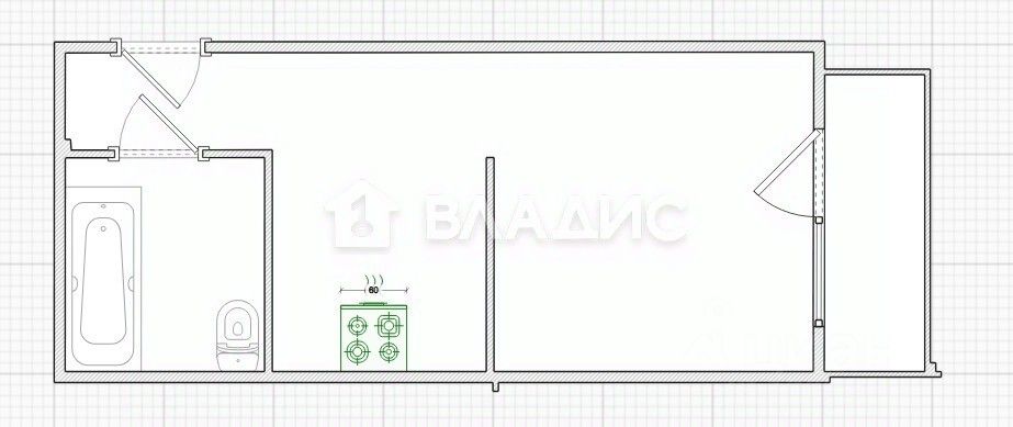 Высота потолков 2,5 метра создаёт ощущение простора. Общая площадь квартиры составляет 30 кв. м, из которых 13,5 кв. м — жилая площадь, а 3,5 кв. м — кухня.