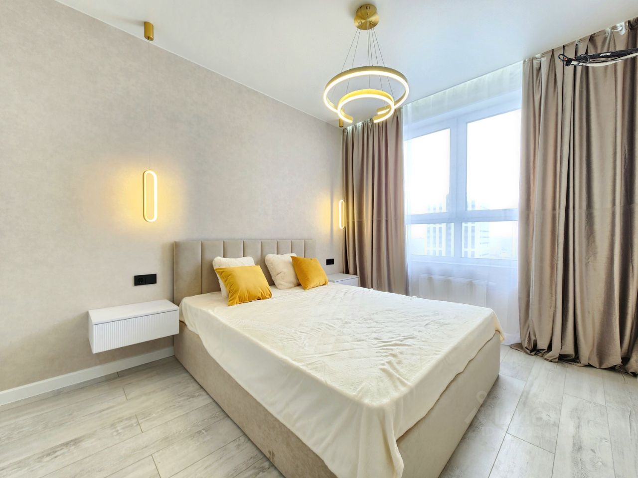 Квартиpа расположена на 12м этаже из 16 ти. Огромный плюс- никто не жил! В квартире новый ремонт, выполнен по дизайн проекту. На полу в коридоре и в кухне гостиной современная широкоформатная плитка. Установлена система '' теплый пол'' для вашего комфорта! В комнатах ламинат 33 класса с фаской. По всей квартире натяжные потолки с точечным освещением, подсветкой гардин, дизайнерские люстры, мастер- свет. Межкомнатные двери с магнитными замками. Санузел совмещен в современном кафеле, тропический душ, инсталляция, акриловая ванная с ''парящим эффектом''. Зеркало с фоновой подсветкой, дорогие смесители.