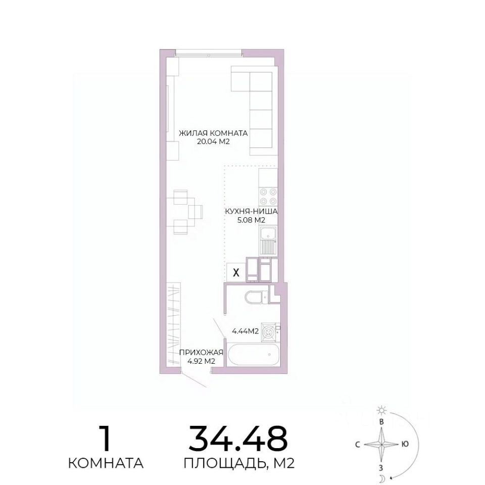 Продаётся 1-комнатная квартира в сданном доме (дом 17), срок сдачи: IV-кв. 2025, общей площадью 34.48 кв.м., на 7 этаже. Дизайнерская отделка.